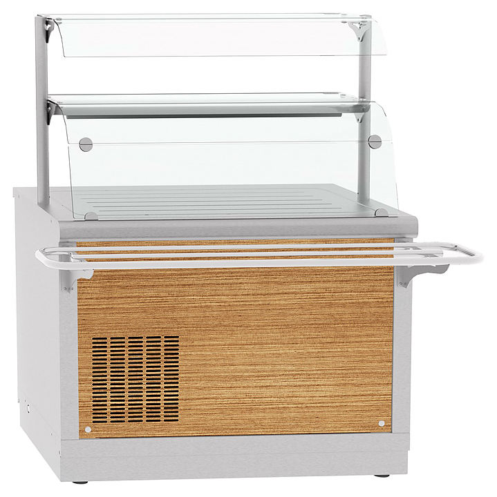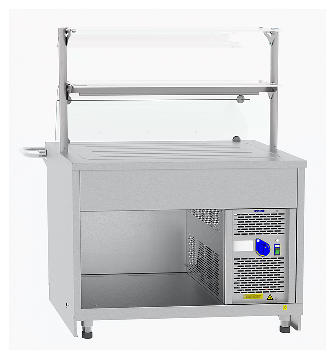 Холодильный прилавок Abat ПВВ(Н)-70Х-06-НШ используется в составе линии раздачи HOT-LINE для демонстрации, охлаждения и кратковременного хранения блюд, холодных закусок и напитков на предприятиях общественного питания и торговли. Модель оснащена регулируемыми по высоте ножками. Панели выполнены из нержавеющей стали. В комплект поставки входит направляющая. Особенности: