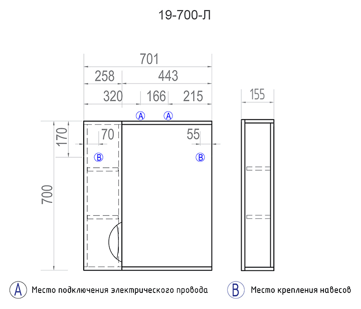 Шкаф зеркальный VIGO Callao 70 70х70 см, левый, с подсветкой, белый
