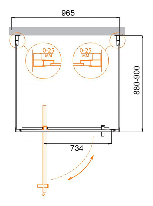 Уголок душевой CEZARES MOLVENO-BA2-100/90-C-Cr-IV 96,5х90х195 см
