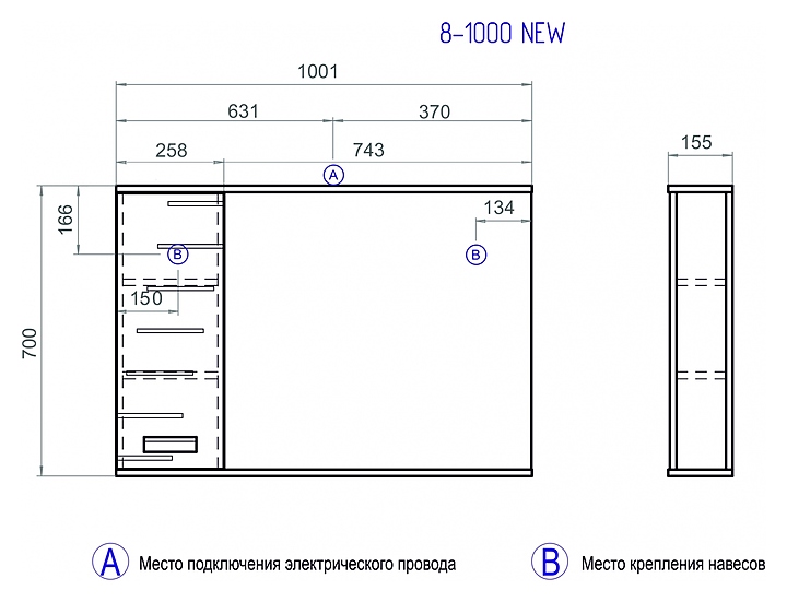 Зеркало VIGO Diana 100 100х70 см, с подсветкой, левое, белый