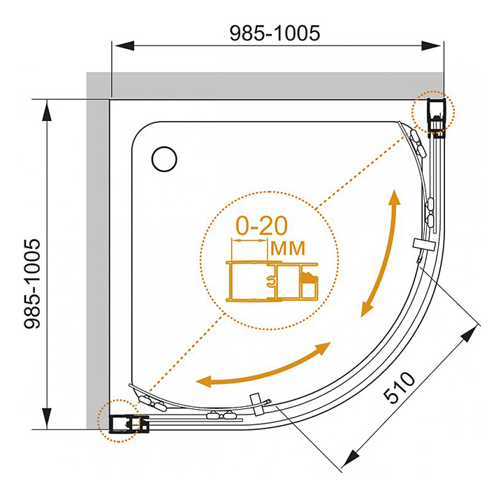 Уголок душевой CEZARES MOMENTO-R-2-100-C-Cr 100х100х195 см