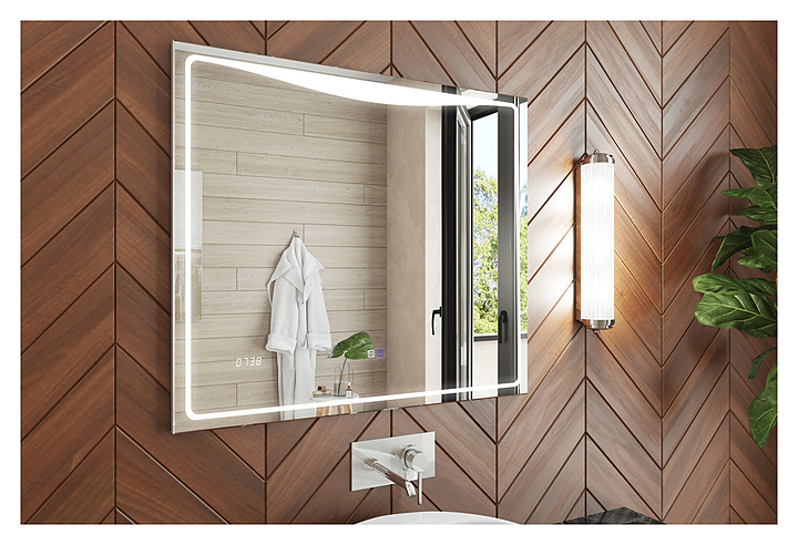 Зеркало VIGO Eva Luxe 100 100х70 см, с подсветкой, электронные часы