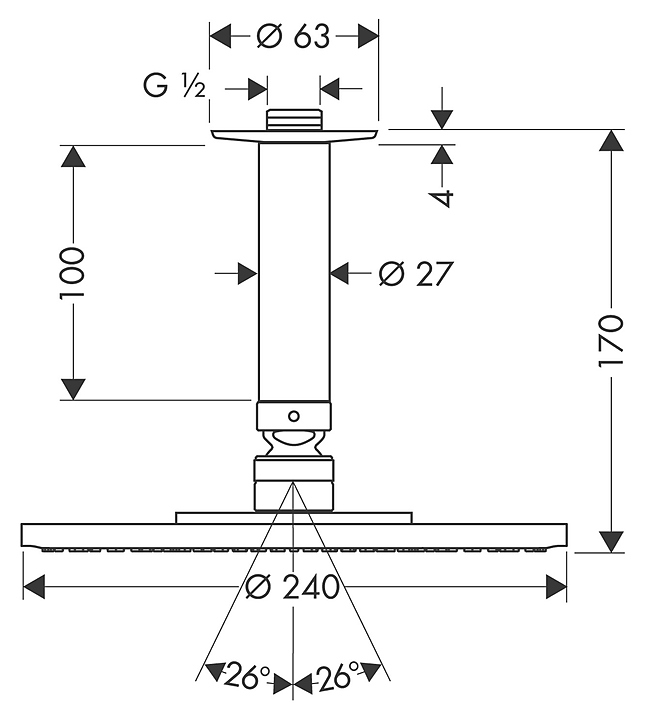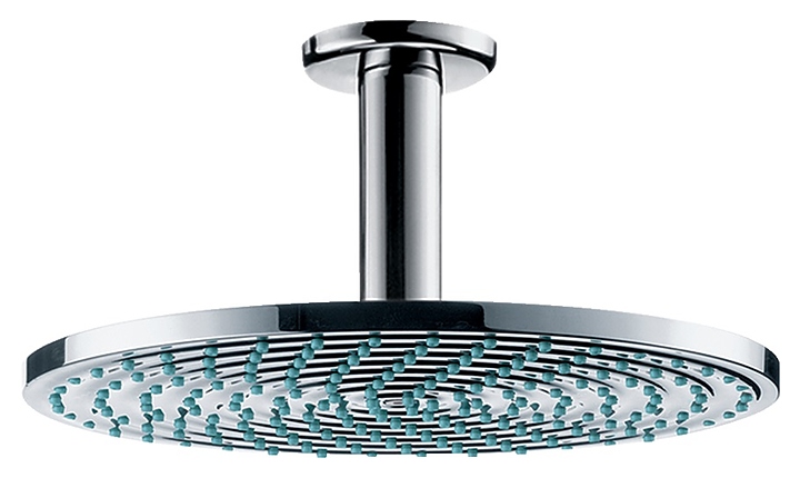 Верхний душ Hansgrohe Raindance Air 240 27477000 благородаря дизайну и продуманным функциям доставляет необыкновенное наслаждение от принятия душа на высочайшем уровне. Его лаконичный, благородный дизайн, гармоничная форма и высококачественная поверхность заметно повышают ценность интерьера ванной комнаты. Модель имеет душевую головку круглой формы и образует впечатляюще большую зону принятия душа. Известковый налет на силиконовых форсунках с легкостью удаляется благодаря технологии QuickClean, достаточно слегка потереть и структура струи снова идеальна. Душ предусматривает монтаж на потолок. С помощью шарнирного соединения верхний душ наклоняется в любом направлении в соответствии с индивидуальными пожеланиями. В комплект поставки входит верхний душ, потолочное подсоединение. Особенности: