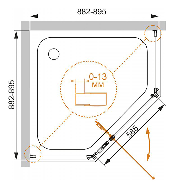 Уголок душевой CEZARES ECO-O-P-1-90-C-Br 90х90х195 см