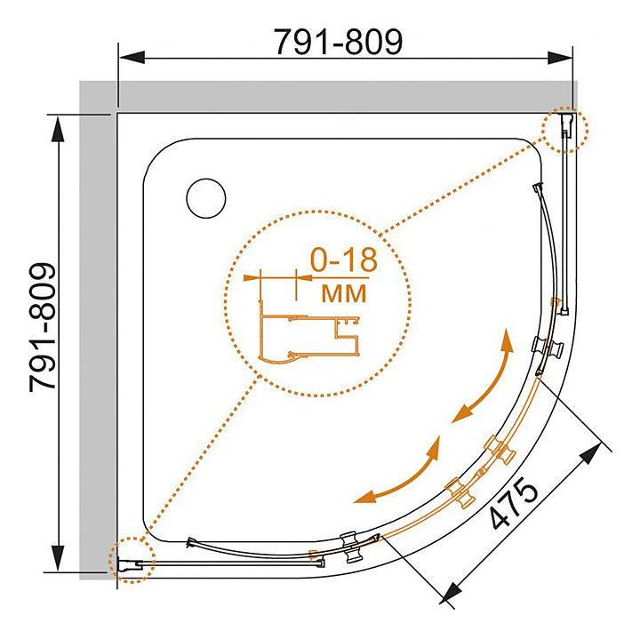 Уголок душевой CEZARES PRATICO-R-2-80-C-Cr 80х80х185 см