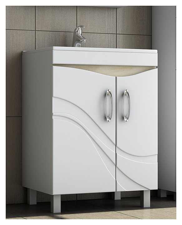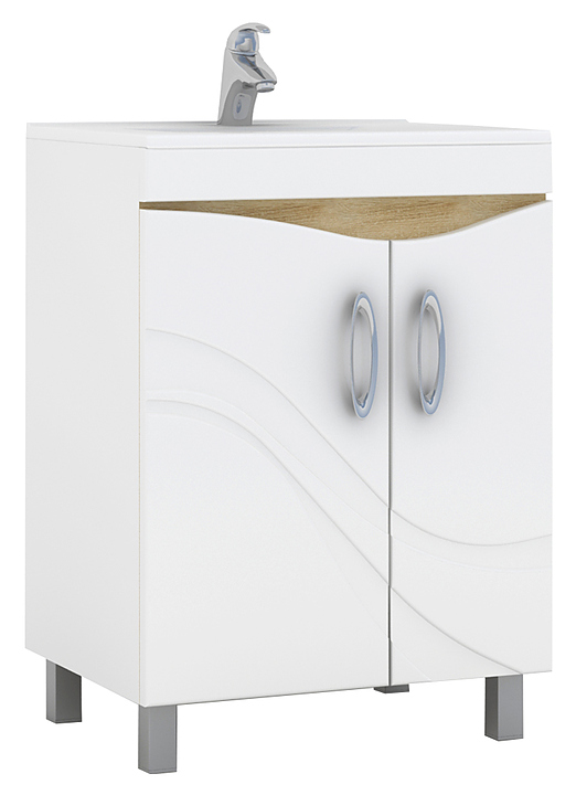 Тумба под раковину VIGO Mirella 60 выполнена в современном стиле и прекрасно впишется в интерьер любой ванной комнаты. Модель оснащена двумя отделения для хранения с дверцами и двумя ящиками с напрявляющими полного выдвижения. Корпус изделия выполнен из влагостойкой ЛДСП. Фасад изделия выполнен из ЛМДФ с белой пленкой ПВХ. Тумба может использоваться вместе с раковиной Kirovit Калипсо 60. Раковина и смеситель в комплект поставки не входят и приобретаются отдельно. Комплектация:
