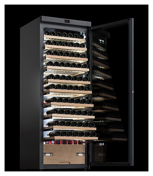 Винный шкаф La Sommeliere VIP330V серии Prestige создает оптимальные условия для сохранения всех вкусовых свойств разливного вина в ресторанах, специализированных магазинах, подсобных складских помещениях, в частных домах или квартирах. Модель оснащена электронным термостатом с сенсорным цифровым дисплеем. Копрус выполнен из металла, полки - из массива дерева, двери - из двухслойного закаленного стекла с УФ защитой. Особенности: