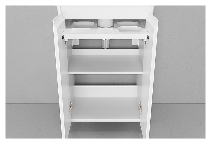 Тумба Velvex KLAUFS 50.2D tnKLA.50.2D-616.216 выполнена в современном стиле. Напольная конструкция обеспечивает легкий монтаж и не требует специального ремонта в помещении. Модель оснащена распашными фасад-створками, за которыми находится выдвижной органайзер и полка, где можно хранить необходимые ванные принадлежности. Корпус изделия выполнен из высококачественной МДФ в матовой плёнке белого цвета, а фасады из МДФ в отделке HPL пластик матовый, что обеспечивает изделию привлекательный внешний вид, а также износостойкость и долговечность. В комплект поставки входят две передние ножки и комплект крепежа для крепления к стене. Раковина и смеситель в комплект поставки не входят и приобретаются отдельно. Особенности: