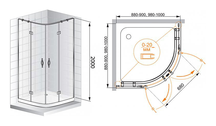 Уголок душевой CEZARES BERGAMO-W-R-2-100-ARCO-C-Cr-IV 100х100х200 см