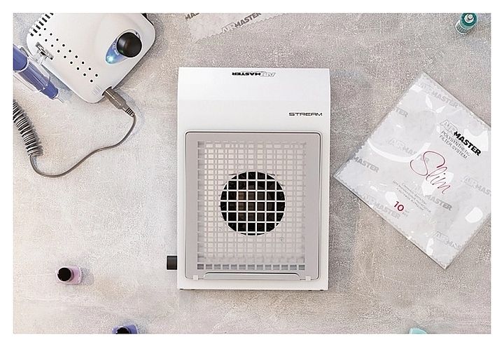 Маникюрный пылесос AirMaster STREAM предназначен для устранения пыли и сора, которые образуются в процессе обработки ногтевой пластины и кутикулы во время проведения процедур маникюра, педикюра и наращивания ногтей в косметологических центрах, салонах красоты и домашних ногтевых студиях. Модель оснащена режимом экономичного потребления электроэнергии. Защитная решетка выполнена из нержавеющей стали. В комплект поставки входят 10 стандартных фильтров. Особенности: