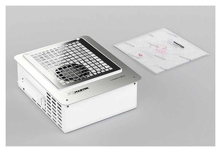 Встраиваемая маникюрная вытяжка AirMaster VORTEX предназначена для устранения пыли, сора и частичек кожи, которые образуются в процессе обработки ногтевой пластины и кутикулы во время проведения процедур маникюра, педикюра и наращивания ногтей в косметологических центрах, салонах красоты и домашних ногтевых студиях. Модель оснащена режимом экономичного потребления электроэнергии. Корпус и защитная решетка выполнены из нержавеющей стали. В комплект поставки входят 10 фильтров Slim. Особенности: