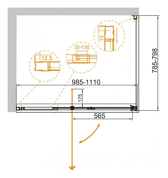 Душевой уголок CEZARES VARIANTE-AH-1-100/110-80-C-Cr предназначен для использования в ванных комнатах. Кабина оснащена одной распашной дверью. Полотно двери выполнено из прочного закаленного стекла, а профиль из анодированного алюминия, который отличается устойчивостью к коррозии, долговечностью и износостойкостью. Поддон в комплект поставки не входит и приобретается отдельно. Особенности: