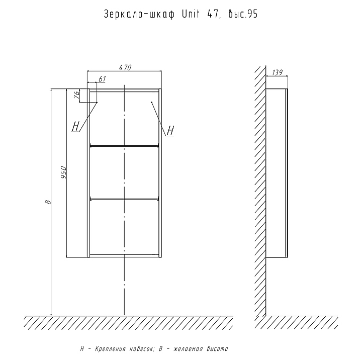 Шкаф зеркальный Velvex UNIQUE UNIT 47 zsUNI.47.H95-211, белый матовый