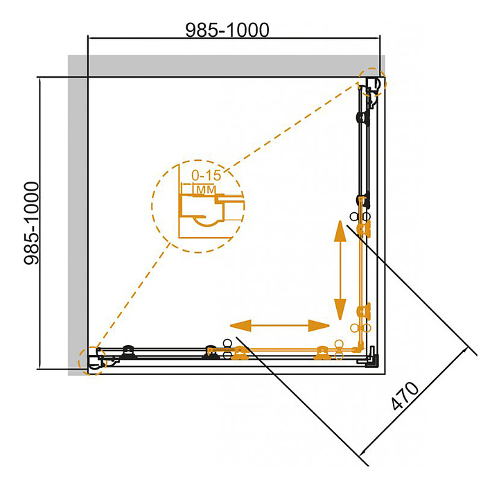Уголок душевой CEZARES GIUBILEO-A-2-100-SCORREVOLE-CP-G 100х100х195 см