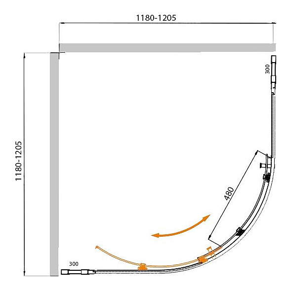 Уголок душевой CEZARES MOLVENO-R-11-90+30-C-Cr-IV 120х120х195 см