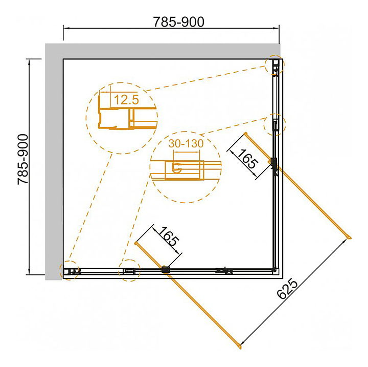 Уголок душевой CEZARES VARIANTE-A/AH-2-80/90-C-Cr