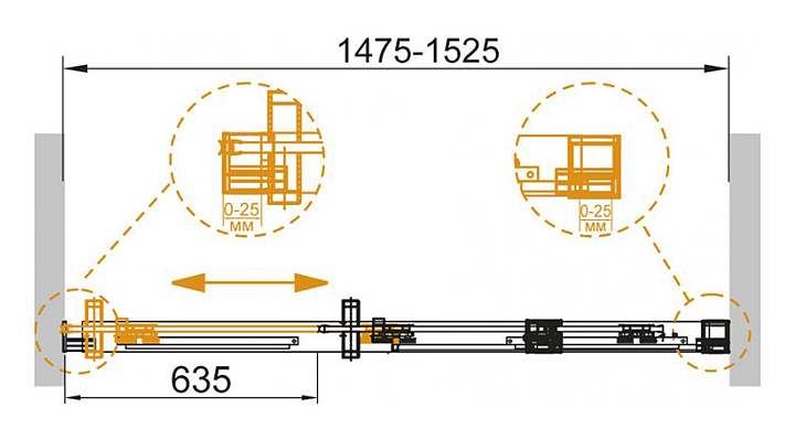 Дверь душевая CEZARES DUET SOFT-BF-1-150-C-Cr 150х195 см, в нишу, раздвижная