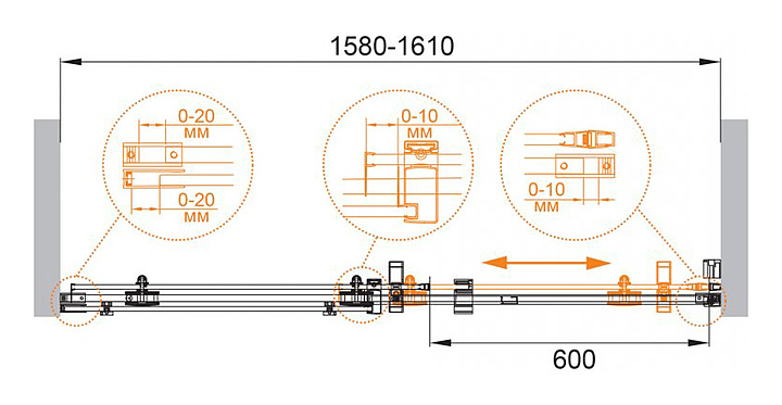 Дверь душевая CEZARES STYLUS-O-M-BF-1-160-C-Cr 160х195 см, в нишу, раздвижная