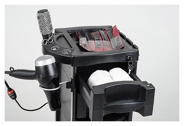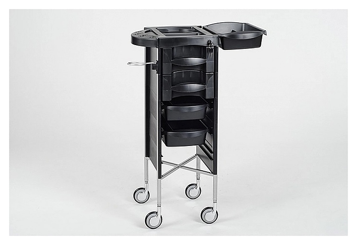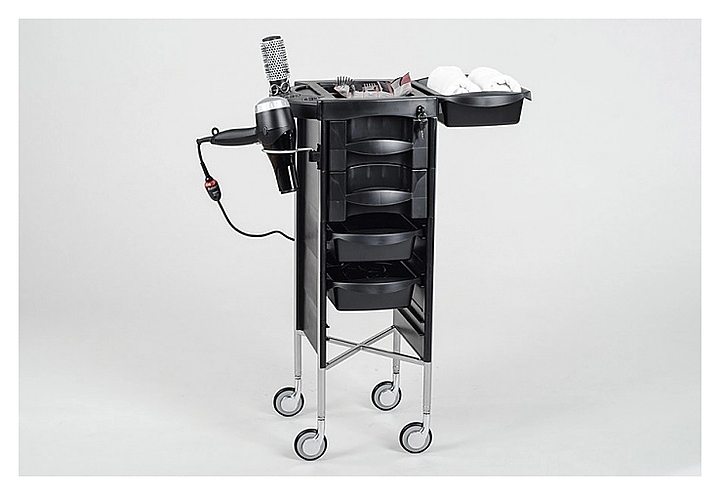 Парикмахерская тележка SunDream QA0006 используется в парикмахерских, салонах красоты и тату салонах для размещения инструментов, аппаратов, средств и прочих аксессуаров, рационализации рабочего пространства мастером и создания комфортных условий для мастера и для клиента. Такое оборудование позволяет держать все необходимое под рукой и правильно организовать рабочее место. Модель оснащена большими поворотными колесами для мобильности и навесной панелью для парикмахерских инструментов. Модель выполнена из хромированной стали и пластика, устойчивого к воздействию косметических средств. Особенности: