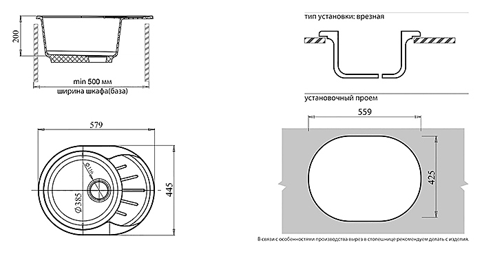 Кухонная мойка GranFest Rondo GF-R580L предназначена для установки в частных домах, квартирах, офисах, отелях, гостиницах и на различных предприятиях для мытья столовых принадлежностей, посуды, приборов, инвентаря и продуктов питания. Модель оснащена крылом для сушки посуды. Изделие выполнено из высококачественного кварца, который устойчив к образованию пятен и воздействию высоких температур. Дополнительные характеристики: