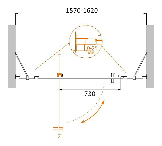 Дверь душевая CEZARES MOLVENO-BA-12-100+60-C-Cr-IV 160х195 см, в нишу, распашная