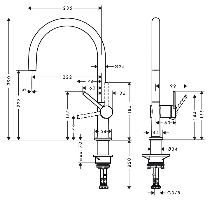Смеситель для кухни Hansgrohe M54 Talis 72804000 предназначен для использования в ванных помещениях для подачи горячей и холодной воды. Отличается современным дизайном, функциональностью и легким уходом. Модель оснащена керамическим картриджем, обеспечивающим плавный ход рычага смесителя, контроль и точность при выборе напора и температуры воды. Открытая форма рукоятки удобно ложится в руку. QuickClean известковый налет и грязь на смесителе исчезнет в мгновение ока, достаточно просто протереть пальцем гибкие силиконовые вставки. Особенности: