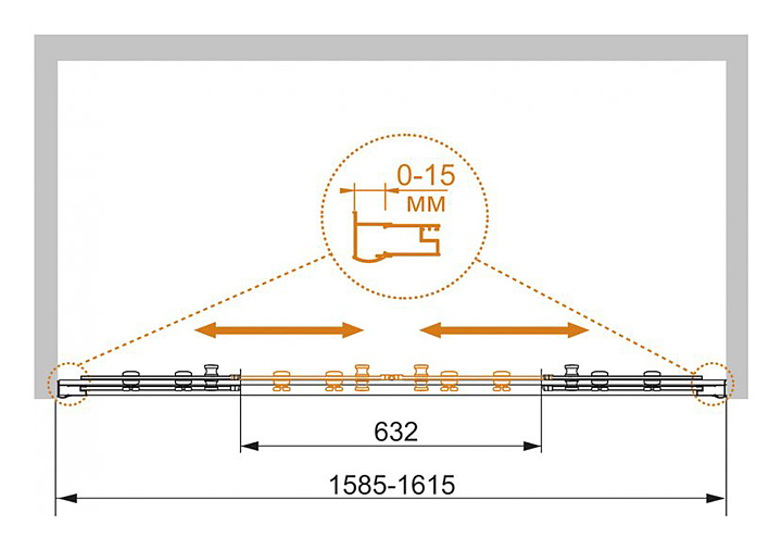 Дверь душевая CEZARES PRATICO-BF-2-160-C-Cr 160х185 см, в нишу, раздвижная