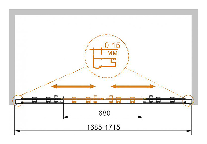 Дверь душевая CEZARES PRATICO-BF-2-170-C-Cr 170х185 см, в нишу, раздвижная
