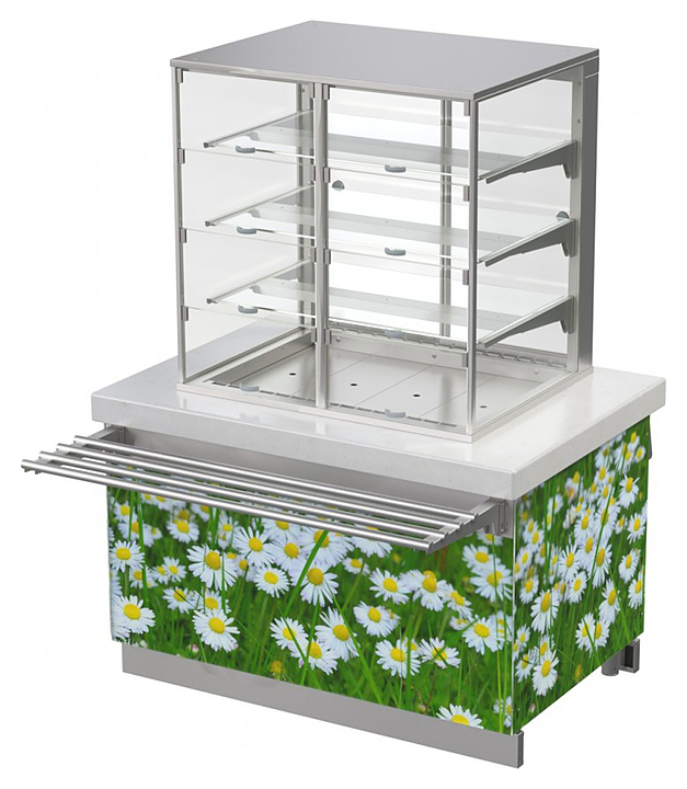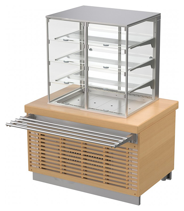 • Корпус витрины из стеклопакетов и светодиодная подсветка каждой полки обеспечивают полный обзор демонстрируемых блюд, привлекая внимание клиентов и вызывая повышенный спрос