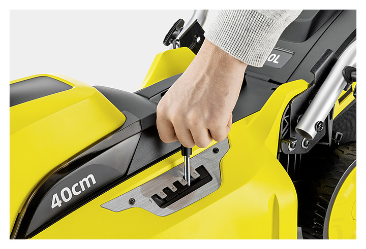 Аккумуляторная газонокосилка Karcher LMO 36-40 BATTERY предназначена для кошения травы на участках с газонами сложной формы. Модель оcнащена литий-ионным сменным аккумулятором, косилочной система «2 в 1», которая позволяет на выбор собирать срезаемые концы стеблей в травосборник или при помощи мульчирующего комплекта распределять их по газону, поводковой рукояткой, снабженной оболочкой из вспененного полимерного материала и выключателями с обеих сторон, указателем уровня заполнения травосборника, который информирует о необходимости его опустошения, предохранительным ключом для защиты детей от травм, которые могут быть вызваны случайным включением газонокосилки, и ножом, который обеспечивает чистый срез стеблей травы. Режущий нож изготовлен из нержавеющей стали. Аккумулятор в комплект поставки не входит и приобретается отдельно. Особенности: