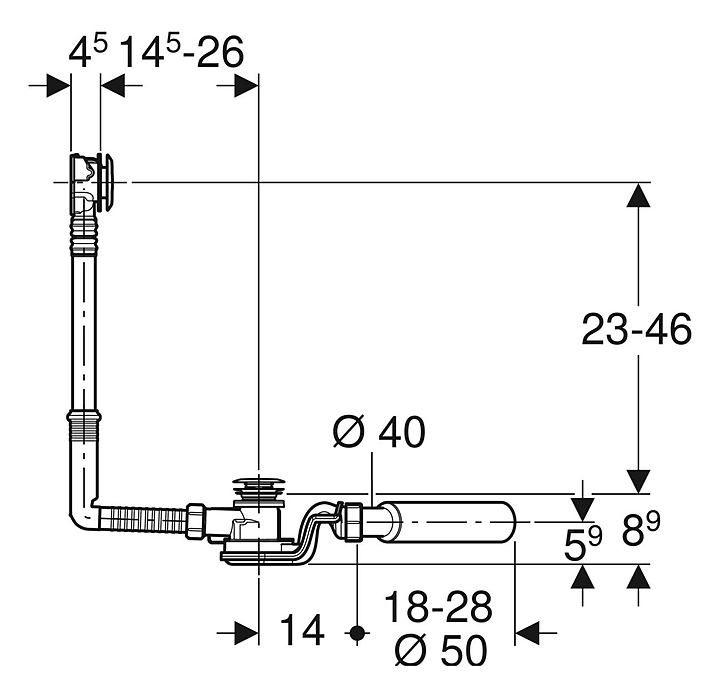 Слив-перелив Geberit 150.758.21.1 предназначен для установки с ваннами. Комплектация: