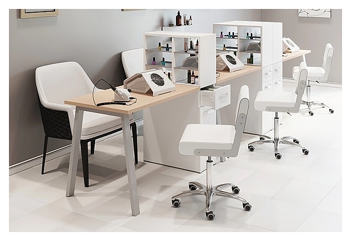 Стул мастера Manzano Murano используется в косметологических центрах, салонах красоты, маникюрных салонах и массажных кабинетах для расположения специалиста при проведении различных процедур, также подходит для домашнего бытового интерьера. Модель оснащена рычагом для регулировки высоты, установленным под сиденьем, и свободновращающимися, бесшумными, прорезиненными колесами на пятилучье основания. Основание и колеса выполнены из хромированного металла, покрытие сиденья и спинки - из экокожи средней степени жесткости, устойчивой к истиранию. Модель поставляется в 3-х цветовых исполнениях: черный, белый, слоновая кость / кофейный кант. Особенности: