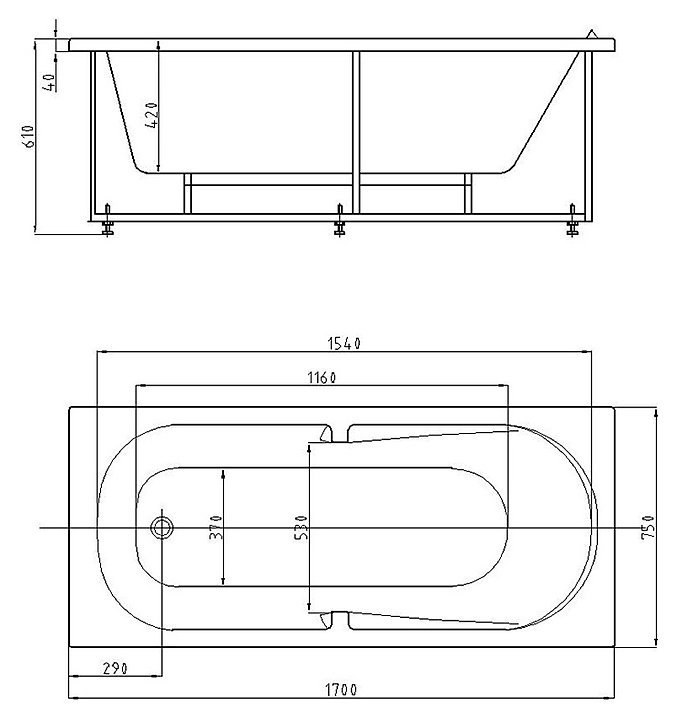 Ванна Aquatek Лея LEY170-0000015 170х75 см, с фронтальным экраном, слив слева, вклеенный каркас, акрил