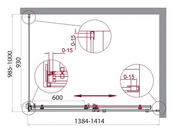 Уголок душевой CEZARES ACQUA-AH-1-140/100-C-Cr 140х100х195 см