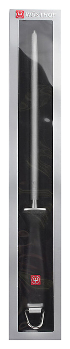 Мусат Wüsthof Sharpening steel 4474/32 предназначен для правки деформированной кромки ножей и поддержания лезвий ножей в идеально остром состоянии на предприятих общественного питания и торговли. Модель оснащена намагниченным стержнем, позволяющим притягивать с поверхности ножа мелких частичек сточенного лезвия, и вделанным в стержень кольцом. Особенности:
