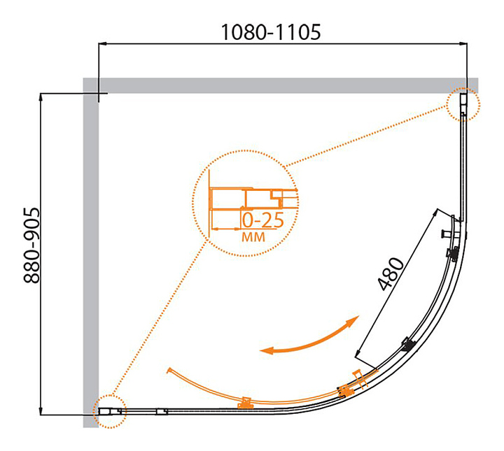 Уголок душевой CEZARES MOLVENO-RH-1-110/90-C-Cr-IV 110х90х195 см