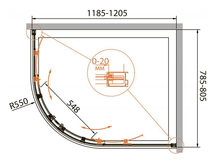 Уголок душевой CEZARES RELAX-RH-2-120/90-C-Bi 120х90х185 см