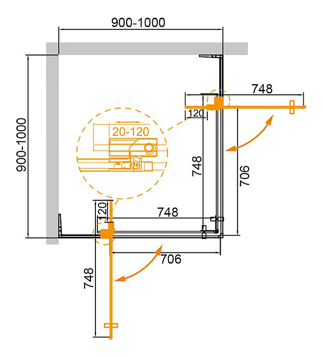 Уголок душевой CEZARES SLIDER-A-2-90/100-GRIGIO-Cr
