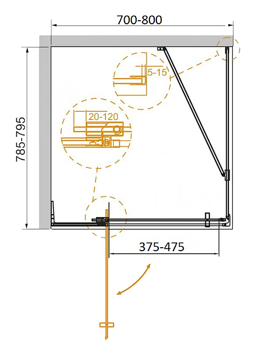 Уголок душевой CEZARES SLIDER-AH-1-80-70/80-C-NERO
