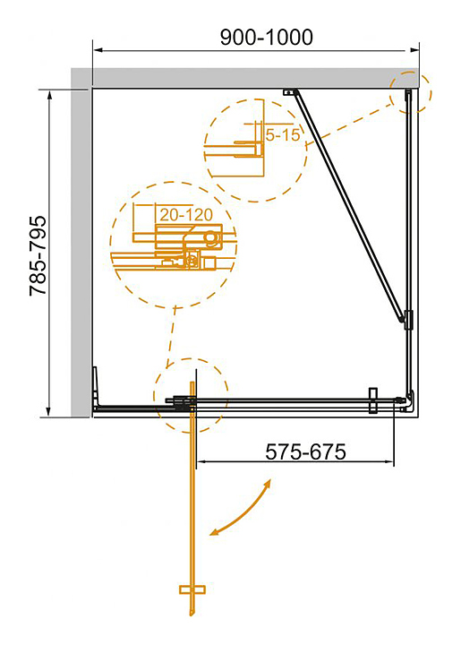 Уголок душевой CEZARES SLIDER-AH-1-80-90/100-GRIGIO-Cr