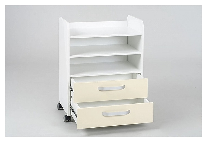 Косметологический столик Mertz Ergo Basic используется в салонах красоты, тату и маникюрных салонах, СПА-центрах, парикмахерских, и медицинских кабинетах для размещения инструментов, аппаратов, средств и прочих аксессуаров, и рационализации рабочего пространства мастера. Такое оборудование позволяет держать все необходимое под рукой и правильно организовать рабочее место. Модель оснащена 2 вместительными полками, 2 ящиками полного выдвижения, и бесшумными, прорезиненными колесами со стопорами. Каркас выполнен из качественного ЛДСП. Особенности: