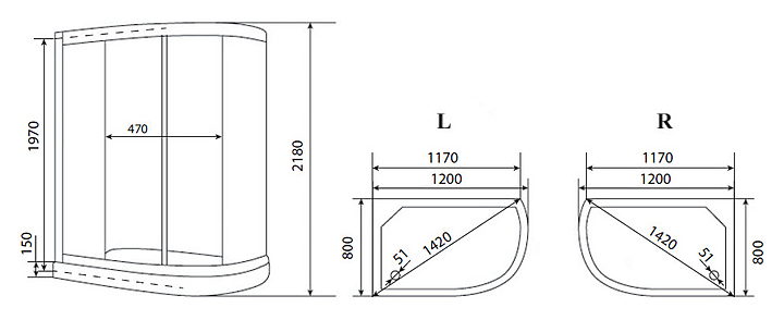 Кабина душевая TIMO ECO TE-0702 R 120х80х218 см, правая