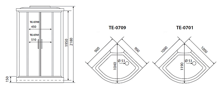 Кабина душевая TIMO ECO TE-0709 Р 90х90х218 см