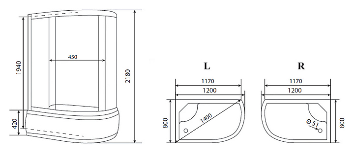 Кабина душевая TIMO ECO TE-0720 R P 120х80х218 см, правая