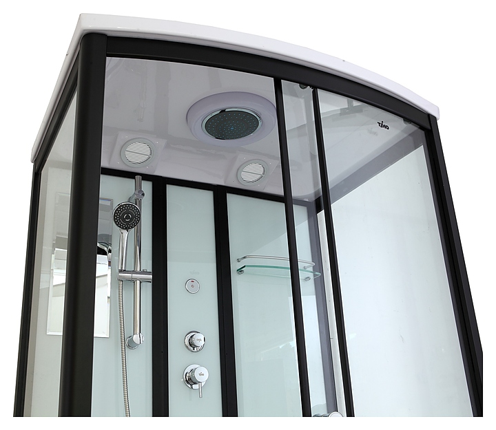 Душевая кабина TIMO Standart Т-6615 Black предназначена для использования в ванных комнатах. Модель оснащена одной раздвижной дверцей, крышей, низким поддоном на усиленном металлическом каркасе, ручной лейкой и тропическим душем, подсветкой и полочкой. Поддон выполнен из качественного акрила, устойчивого к механическим повреждениям, обладающего высокой теплоемкостью, небольшим весом и повышенной шумоизоляцией. Стульчик в комплект поставки не входит и приобретается отдельно. Особенности: