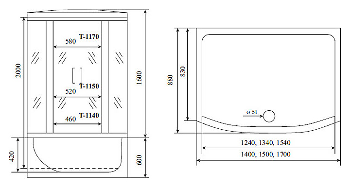 Кабина душевая TIMO Standart Т-6670 Black 170х88х220 см
