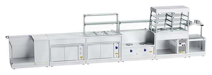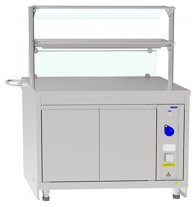 Прилавок-витрина тепловой Abat ПВТ-70Х-06 используется в составе линии раздачи HOT-LINE для демонстрации, подогрева, кратковременного хранения блюд, мелкоштучных хлебобулочных и кондитерских изделий, пищевых продуктов в функциональных емкостях и подносах, а также для раздачи их потребителю на предприятиях общественного питания и торговли. Модель оснащена 2 стеклянными полками и LED-подсветкой. Съемные панели выполнены из нержавеющей стали. Особенности: