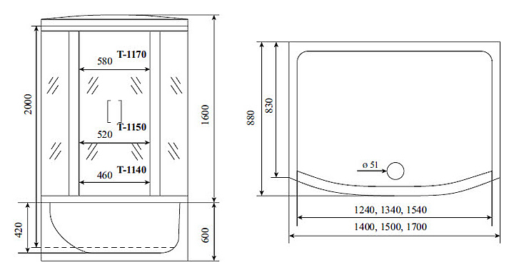 Кабина душевая TIMO Comfort T-8850 Clean Glass 150х88х220 см