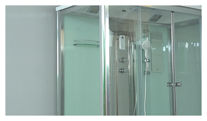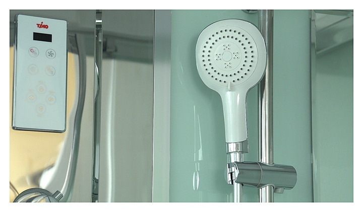 Душевая кабина TIMO Comfort T-8850 Clean Glass предназначена для использования в ванных комнатах. Модель оснащена крышей, двумя раздвижными дверцами, высоким поддоном на усиленном металлическом каркасе с возможностью набора воды, термостатическим смесителем, ручной лейкой с силиконовым шлангом и регулируемой по высоте штангой, тропическим верхним душем, каскадным душем, точечным гидромассажем, сенсорной панелью управления, радио, подсветкой, полочкой, зеркалом и вентилятором. Поддон выполнен из качественного акрила, устойчивого к механическим повреждениям, обладающего высокой теплоемкостью, небольшим весом и повышенной шумоизоляцией. Особенности: