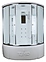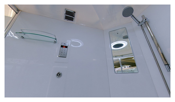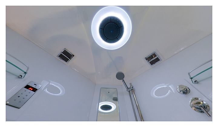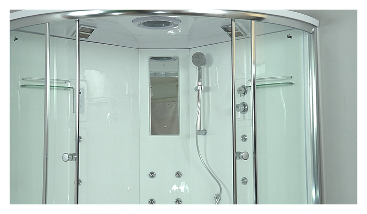 Душевая кабина TIMO Lux T-7725 предназначена для использования в ванных комнатах. Благодаря поддону в форме четверти круга модель можно вписать даже в ванные комнаты небольшой площади. Модель оснащена крышей, двумя раздвижными дверцами, высоким поддоном на усиленном металлическом каркасе с возможностью наполнения водой, термостатическим смесителем, ручной лейкой с силиконовым шлангом и регулируемой по высоте штангой, тропическим верхним душем, точечным гидромассажем, сенсорной панелью управления, радио, подсветкой, двумя полочками, зеркалом, вентилятором и встроенным сиденьем. Поддон выполнен из качественного акрила, устойчивого к механическим повреждениям, обладающего высокой теплоемкостью, небольшим весом и повышенной шумоизоляцией. Подголовник в комплект поставки не входит и приобретается отдельно. Особенности: